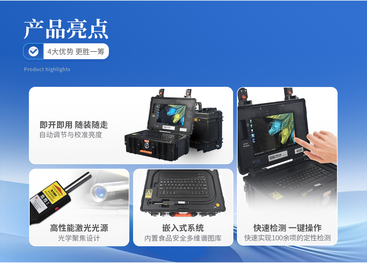 食品違禁添加物、色素添加、農(nóng)獸藥殘留檢測 爆炸物、危險化工品、易燃易爆品檢測 珠寶玉石鑒定、文物鑒別 生物醫(yī)藥檢測、材料表征、地址勘探等 其他各類訂制應(yīng)用