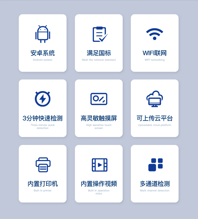 6、檢測通道:8個檢測通道,可以同時測試多個樣品,循環(huán)檢測,即放即檢,每個樣品由程序控制分別獨(dú)立工作,不會互相干擾。