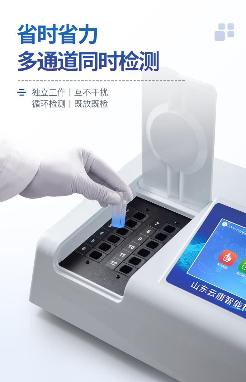 農(nóng)殘檢測設(shè)備8個檢測通道,可以同時測試多個樣品,循環(huán)檢測,即放即檢,每個樣品由程序控制分別獨(dú)立工作,不會互相干擾。 熱線:133-7109-8225