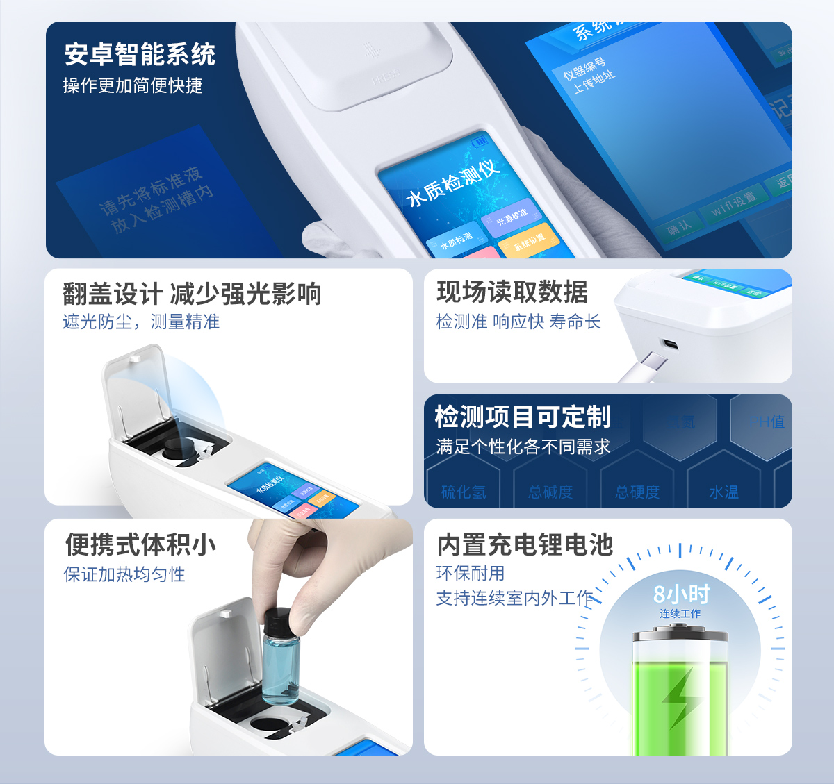 ⑥便攜式體積小,重量輕,方便戶外檢測(cè);