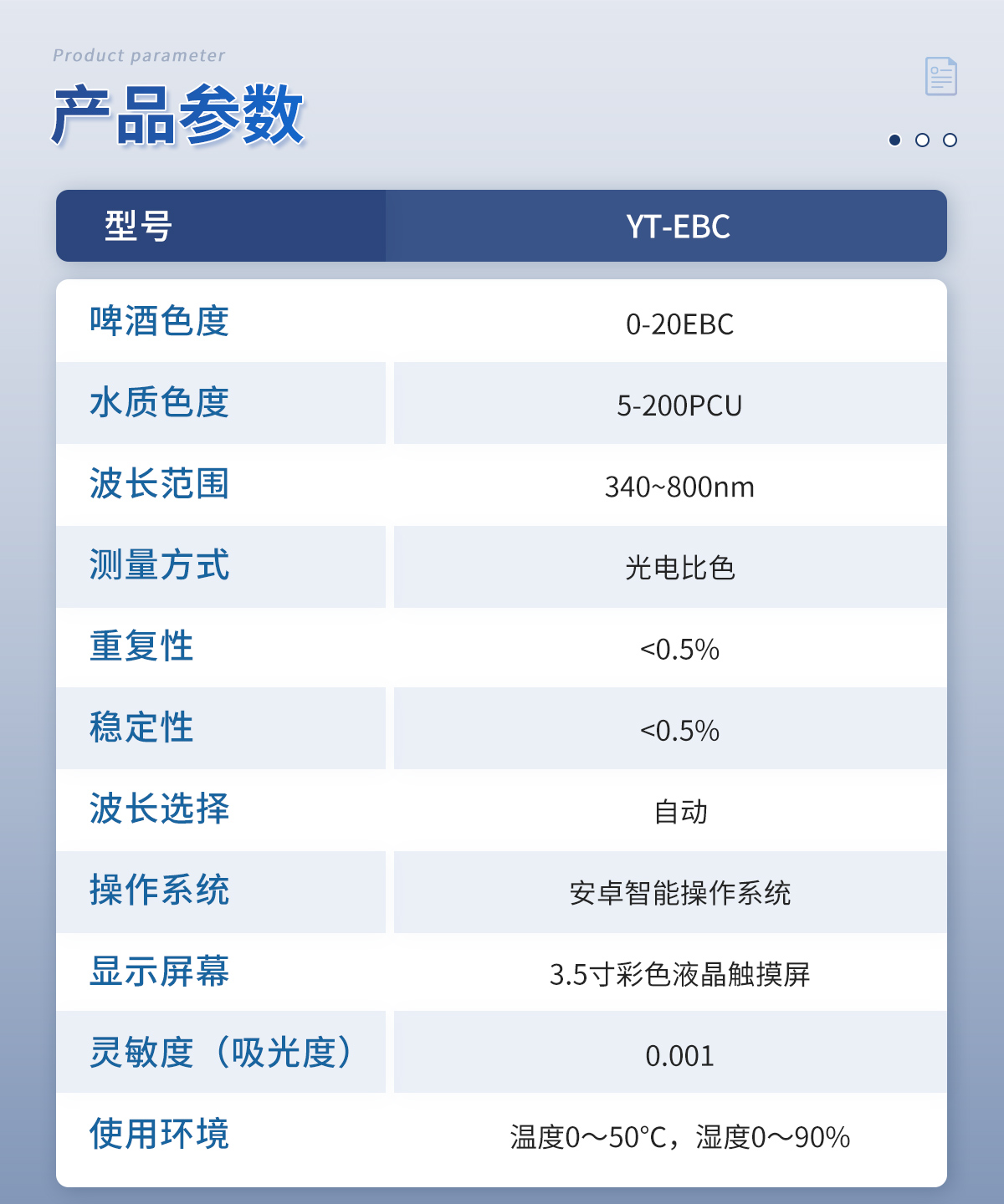 啤酒色度測(cè)定儀采用鉑-鈷標(biāo)準(zhǔn)色度法,用于測(cè)定溶解狀態(tài)的物質(zhì)所產(chǎn)生的顏色,儀器采用國(guó)家標(biāo)準(zhǔn)GB5750中所規(guī)定的鉑-鈷色度標(biāo)準(zhǔn)溶液進(jìn)行標(biāo)定,采用鉑-鈷色度作為計(jì)量單位。