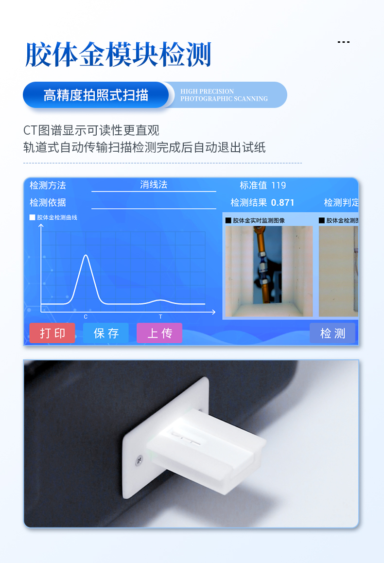 2.支持金標(biāo)項(xiàng)目檢測定性檢測,結(jié)果可顯示樣品陰陽性結(jié)果