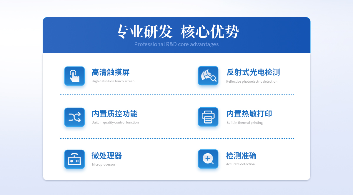 | 1、 Android觸控系統(tǒng)結(jié)合大尺寸高清屏幕,界面友好,操作簡單流暢,無需外接設(shè)備; | 2、 6通道可以同時檢測不同項目,顯著提升檢測效率,滿足批量樣本快速處理需求; | 3、 二維碼掃描錄入樣本信息,避免人工錯誤 | 4、 8G超大容量內(nèi)存,支持按日期靈活查詢、預(yù)覽、刪除結(jié)果,并生成多樣化專業(yè)報告。 | 5、 內(nèi)置熱敏打印機,檢測完成即可現(xiàn)場打印標(biāo)準(zhǔn)報告,提升工作效率。 | 6、 關(guān)鍵部件實時自診斷功能,保障儀器長期穩(wěn)定運行。 | 7、 高速有線/無線網(wǎng)絡(luò)及藍(lán)牙,構(gòu)建完善的數(shù)據(jù)監(jiān)控平臺,實現(xiàn)數(shù)據(jù)實時上傳、遠(yuǎn)程查詢、統(tǒng)計分析和監(jiān)管協(xié)同。 | 8、 豐富的接口設(shè)計,輕松連接電腦、U盤、網(wǎng)絡(luò)及上位機系統(tǒng),支持U盤導(dǎo)出。 | 9、 孵育模塊為特定試紙條反應(yīng)提供**溫度環(huán)境。 | 10、 流線型結(jié)構(gòu),緊湊輕便,兼顧實驗室耐用性與檢測需求。 | 11、 插卡判斷:檢測卡未插入檢測通道不能檢測 | 12、 內(nèi)置質(zhì)控功能,可設(shè)備送檢、設(shè)備自檢、試劑卡自檢 | 13、 檢測方式:孵育檢測、即時檢測(對檢測數(shù)據(jù)復(fù)檢核實) | 14、 檢測曲線:可以對試劑卡的檢測核驗,防止誤判 | 15、 檢測結(jié)果:報告出檢測項目、被測物質(zhì)的濃度、檢測單位、被檢查單位、檢驗員、檢測時間、檢測限等信息可在觸摸屏上顯示,可通過儀器內(nèi)置打印機輸出 | 16、 項目管理:支持檢測項目拓展功能 | 17、 界面設(shè)置:可修改標(biāo)題和頁尾信息,靈活展示儀器信息 |