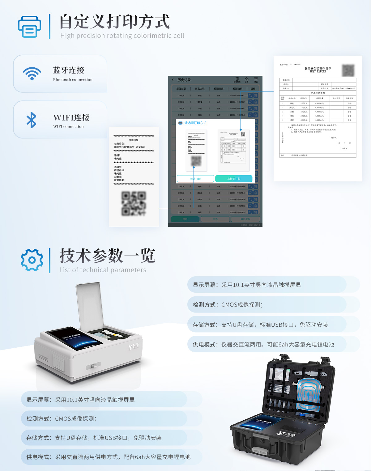 9、A4紙版本報告打印功能(可選配):設(shè)備擁有兩種結(jié)果展示方式,可以自動生成A4打印模板和小票打印模板兩種樣式,可通過WiFi及網(wǎng)線等方式鏈接外置打印機可進行打印