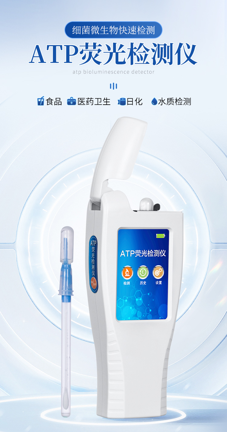 該設(shè)備為全新升級產(chǎn)品,大屏幕觸摸顯示屏,代替?zhèn)鹘y(tǒng)按鍵。操作采用生物化學(xué)反應(yīng)方法檢測ATP含量,ATP熒光檢測儀基于螢火蟲發(fā)光原理,利用“熒光素酶—熒光素體系”快速檢測三磷酸腺苷(ATP)。ATP拭子含有可以裂解細胞膜的試劑,能將細胞內(nèi)ATP釋放出來,與試劑中含有的特異性酶發(fā)生反應(yīng),產(chǎn)生光,再用熒光照度計檢測發(fā)光值,微生物的數(shù)量與發(fā)光值成正比,由于所有生物活細胞中含有恒量的ATP,所以ATP含量可以清晰地表明樣品中微生物與其他生物殘余的多少,用于判斷衛(wèi)生狀況。